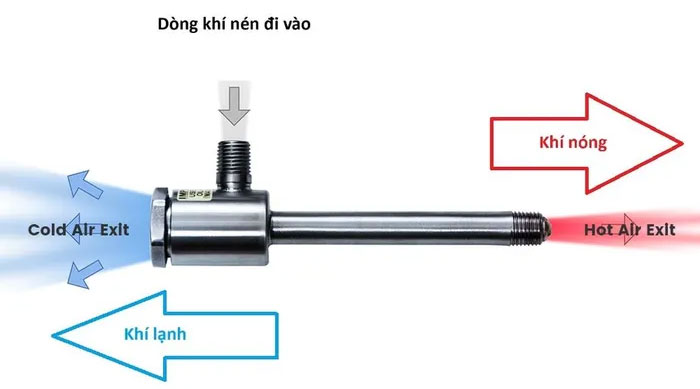 Thật sự thú vị khi chứng kiến luồng khí áp suất cao khi được bơm vào một thiết bị thì sẽ cho ra một bên là khí nóng, một bên là khí lạnh. Nhiệt độ chênh lệch có thể lên đến hàng trăm độ C.